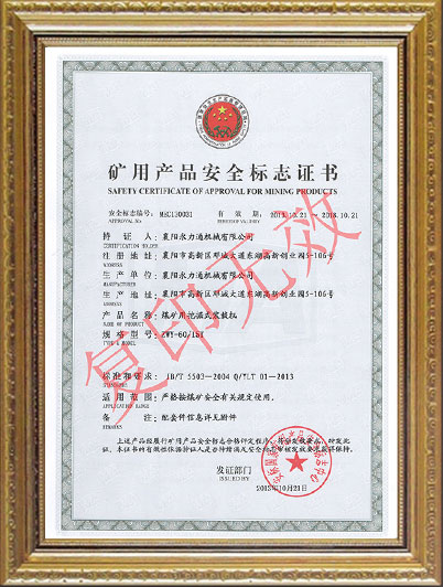 • ZWY/60/15T礦用安全證書